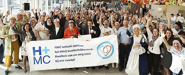 Donderdag 16 maart kreeg HMC het kwaliteitskeurmerk voor zorginstellingen, het NIAZ accreditatiebewijs, officieel uitgereikt. De NIAZ-accreditatie is een belangrijk kwaliteitslabel binnen de ziekenhuiszorg. Hiermee tonen we aan dat de veiligheid van patiënten, medewerkers en bezoekers is gewaarborgd, er sprake is van verantwoorde zorg en dat voortdurend wordt gewerkt aan verbetering van zorg en dienstverlening. Op alle locaties van HMC werd de officiële uitreiking gevierd.