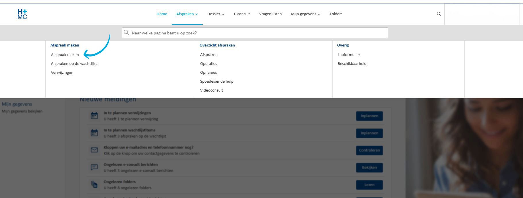 In de meeste gevallen maakt u een afspraak via het patiëntenportaal mijnHMC. Zo werkt het: